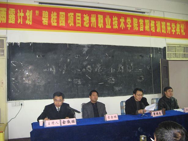 章顺来院长首先讲话,他对各级政府和各位领导的支持表示衷心的感谢,对为项目实施付出艰辛劳动的扶贫系统的同志表示由衷的谢意,对全省各地参加我院首期培训的全体学员表示热烈的欢迎。章院长介绍了学院的基本情况和发展目标,表示学院将使学员掌握本专业技能,取得相应的职业技能资格证书。